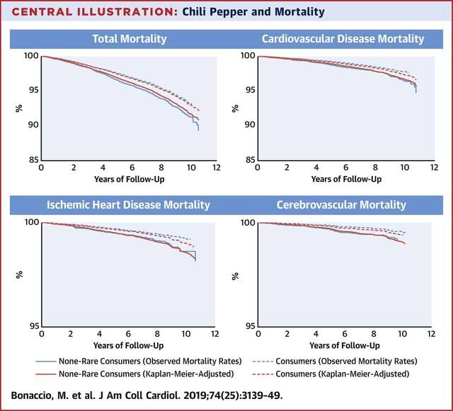 最后结果显示,每周至少吃四次辣椒的人,死于心脏病发作的风险降低40%,死于中风的风险减少了一半以上。此外,定期食用辣椒与冠心病的死亡风险也呈负相关。