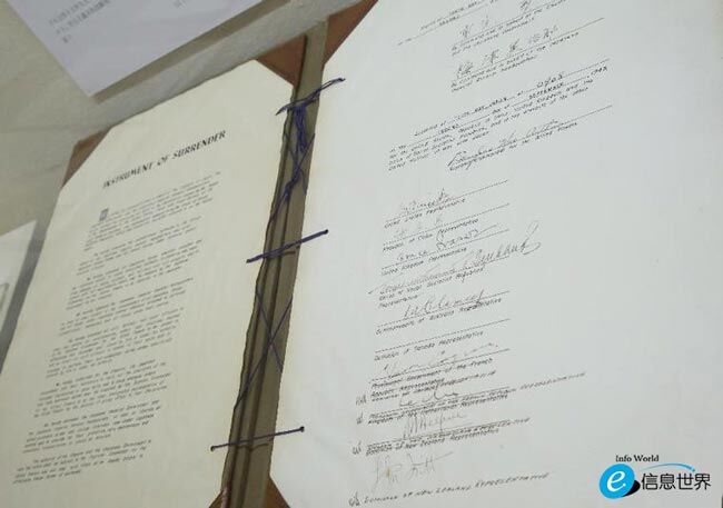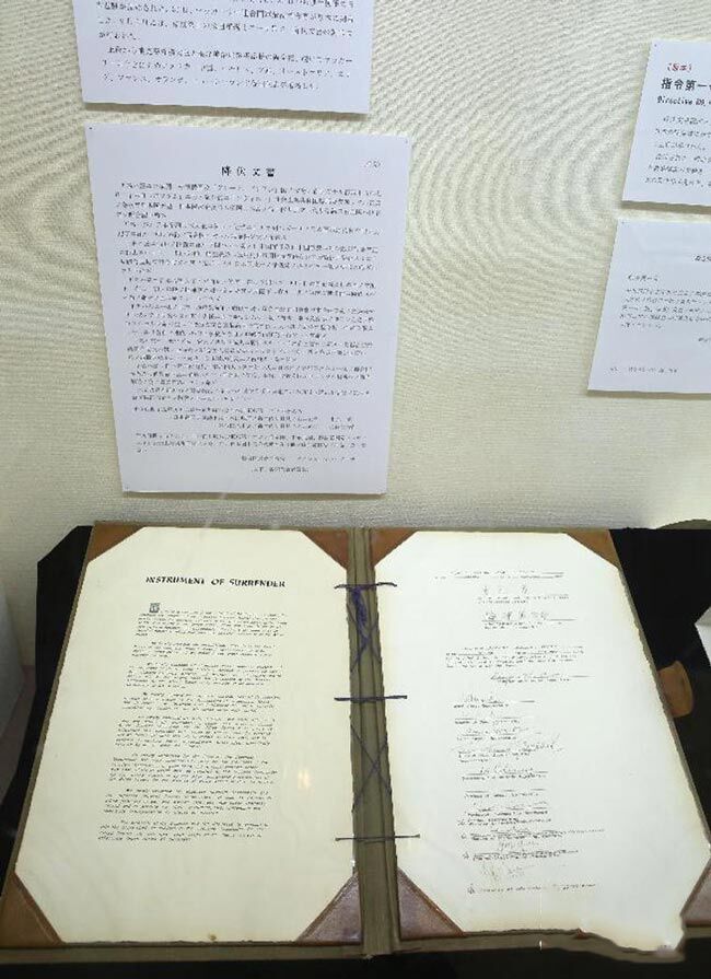 在外交史料馆展出的英文投降书原件上,重光葵、梅津美治郎以及接受日本投降的各国代表签名依然清晰可见。日本二战投降书复印件一直作为重要史料在日本外务省外交史料馆中展出。此次投降书原件展出将持续至9月12日。