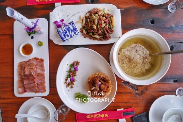 风骨响菜,香酥的排骨放在“鸟巢”中,搭配了脆香的响菜,一口排骨、一口响菜,清爽而解腻,独特之处是还有着巧克力红糖来结尾。金黄的肋排闪着油润的光泽,稍微凑近就能闻到一股开胃的酱香。肋排肥瘦均匀的刚刚好,热油炸过一遍之后的干香,混合鲜辣的芡汁,一块直接塞到嘴里,满口都是咸润扎实的肉香,想停下筷子都难得很!响菜其实就是贡菜,样子看着很质朴乖巧,但其实口感很特别,微辣鲜香又脆又嫩吃过就忘不了。“咯吱咯吱”的咬在嘴里,像是在唱Rap!
