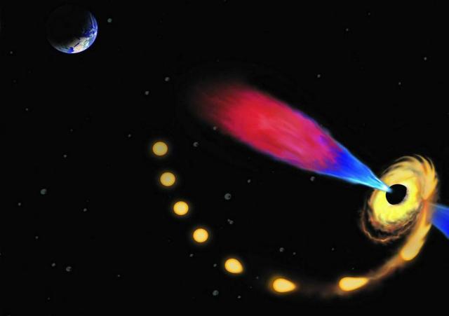 这是距离在地球大概是300万光年左右的地方出现的一颗恒星,而这颗恒星正在面临着被黑洞吞食的巨大威胁,但是在吞食的过程中黑洞并不是一下子将它彻底的吞到自己的腹中,反而出现了不断停止的现象。