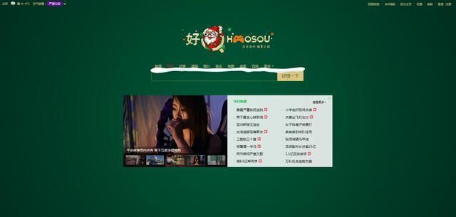 360搜索引擎“好搜”采用圣诞绿的背景颜色,搜索栏上积了一层雪,风格突出。