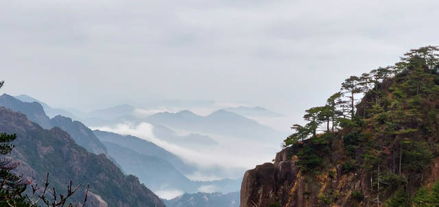 以奇松、怪石、云海、温泉、冬雪“五绝”享誉天下。云海是黄山美景的魔术师,黄山只有在雨中雾里才凸显了她的柔美。清代诗坛盟主钱谦益,借险峰、绿潭、流泉、云气、山花等意象,写下了“刻疏去气排窗棂,穿穴烟岚置堂奥。山中辛夷花放荣,此上桃李俱落英”的诗句,描绘了烟雨黄山的秀美景色。