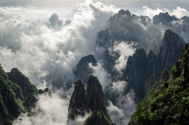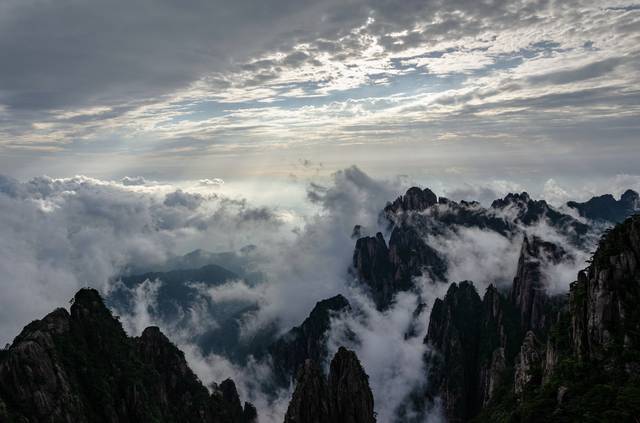 7月1日早上,安徽黄山雨后东海、西海、南海、北海、天海“五海”连片,在惠风助长下,漫过峻岭,俯冲谷底,气势恢弘。座座山峰如同海中礁石,在波涛中巍然不动,大有古人“望中汹涌如惊涛,天风震撼大海潮;有峰高出惊涛上,宛然舟揖随波漾” 诗中意境。