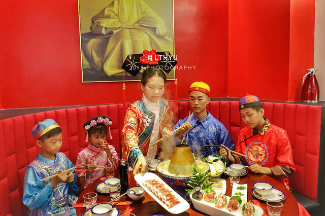 1078號宫廷涮肉松柏店在莲岳路上,远远的就看到红色的大门,一排景泰蓝的铜火锅与宫廷风与眼前,好似穿越在清宫时期的皇宫。新店开业,居然店里还有着格格、王爷、小阿哥……在里面走动,哇,像演戏一样,是不是也能偶遇禧妃、令妃,大猪蹄子?