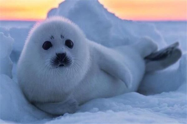10、格陵兰海豹:格陵兰海豹简直就是能“萌死”人,它们主要分布在北冰洋和亚特兰大的极地地区,全身白色除了面部一点黑,很有特点。