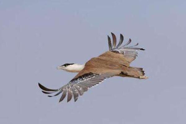 2、南亚鸨:南亚鸨是印度及巴基斯坦东部的鸨,栖息在干旱至半干旱的草原,长满高草及针刺丛林,但会避开灌溉地区。南亚鸨是虽然有一定的飞行能力,但最常见的是在地面上行走或跑步。由于人类捕猎和生存环境受到破坏,南亚鸨数量已经少于1000只,是一种濒临灭绝的鸟类。