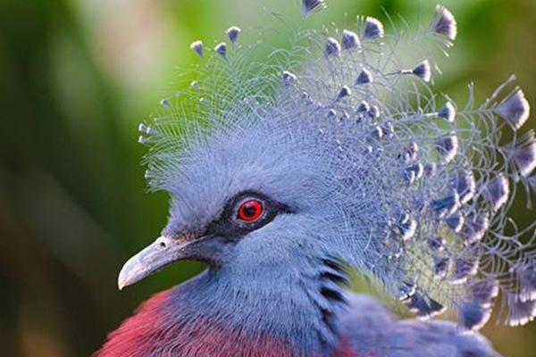 9、维多利亚冠鸠:维多利亚凤冠鸠体长超过70厘米,雌雄同色,拥有鸟类中最华丽漂亮的羽冠,也是色彩艳丽最漂亮的鸠鸽,是家鸽家族中最大的成员。身体上长着亮青绿色的羽毛,在它的扇形的冠上一生都带有一些镶着蕾丝花边的羽毛。