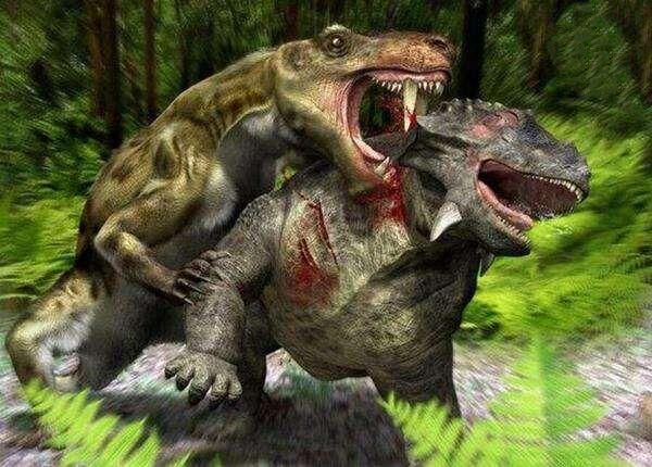 2、丽齿兽:丽齿兽(Gorgonopsid)起源于二叠纪,2.52亿年前。丽齿兽食肉,外形像狼,是首次长有犬齿的动物,这是生物进化史上的一大重要突破。它们能够轻易的撕开皮肉, 就如同一把炙热的金属刀滑过黄油一般,被称为“二叠纪的野狼”。