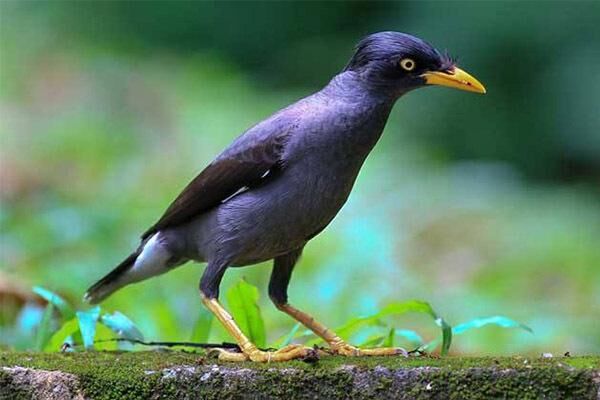 6、八哥:八哥鸟通体乌黑,额前有黑色羽簇。像立起的王冠,非常独特。八哥的开口率比其他鸟儿要高很多,它们聪明伶俐,善于模仿人语。而且价格不高,从小就开始饲养的八哥鸟非常亲人。