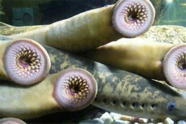 5、七鳃鳗:七鳃鳗可以说给不少都留下了很深的“阴影”,它们存活到如今已有3.6亿年的时间,长相很是诡异,可怕的牙齿能吸附到其它生物身上析出血液,想想都会觉得很可怕。