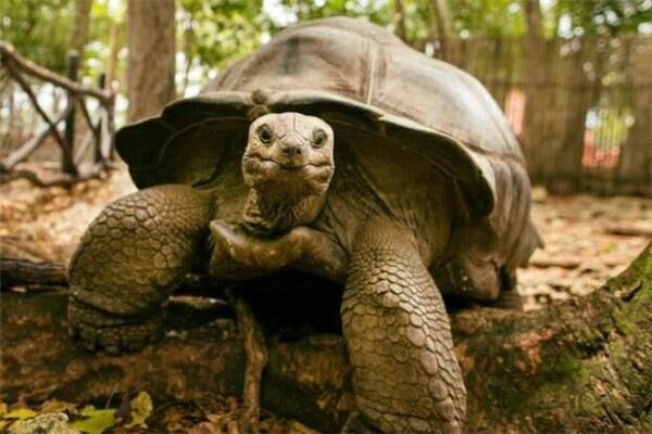 7、阿尔达布拉象龟:原生于印度洋的阿尔达布拉群岛,是第一只受国际保护的陆龟,也是世界上最大最长寿的陆龟。此龟一般体长可超过1米,体重200多公斤。由于它们的体形巨大,被人们称为象龟。