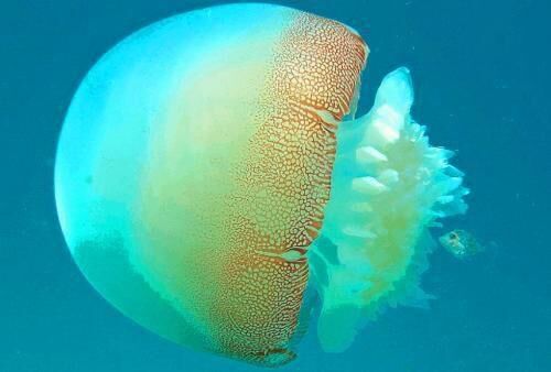 5、煎蛋水母:煎蛋水母是一种十分奇特而又美丽的水母,其看起来很像是一个煎蛋,因而得名。煎蛋水母生活在地中海,亚得里亚海和爱琴海的海域,是少数的一种不需要借助洋流就能自己游动的水母。
