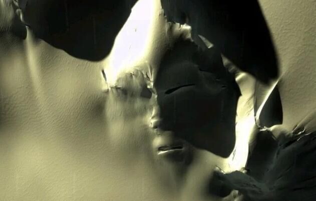 据报道,国外一网友在网上上传了一段影片,地点是南极标“72°00′36.00” S,168°34′40.00” E”的位置发现了一张超清晰的"外星人"脸。