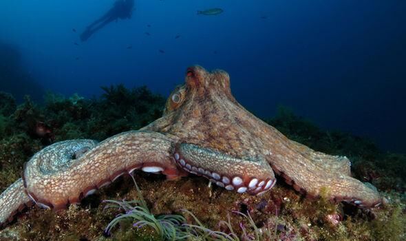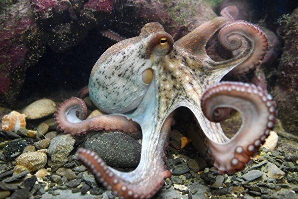 在美国公共广播电视公司拍摄的纪录片中,有章鱼在睡觉时迅速变色的画面。图为2018年3月6日,法国西部海域中的一只章鱼。