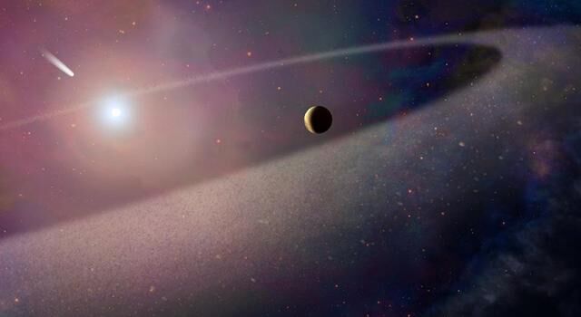 一种理论认为,早期的太阳系中,一个由化合物和尘埃组成的平滑的圆盘围绕在太阳的周围旋转,也叫原行星盘。行星从这个圆盘中获取了各自所需的物质诞生后,原行星盘剩下的物质又构成了一颗颗仅几英里宽的“雪球”,绕着太阳以各不相同的偏心率轨道运动着。多数彗星轨道远离太阳的一端可达到冥王星以外的区域。