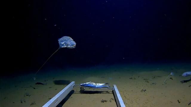 此次探险队在印度洋的最底层也就是爪哇海沟这个地方拍摄到了一种新奇的生物,这个生物属于凝胶状生物,但是它整个的外观看起来简直就像是一个绳子,然后绑在一个气球上,这样在海底飘来飘去的。据探险成员表示,当他们在所拍到的视频中看到这种生物的时候,也是感觉非常不可思议,他们清晰的看到了这种神奇的海底生物,从海洋之中比较黑暗的区域慢慢的走了过来,还好奇的飘向了镜头,然后又慢慢的飘走了。