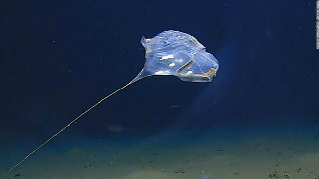 海洋之中的生物种类可以说相当的丰富,虽然我们现在对于海洋之中各种生物的研究一直没有停止过,但是关于海洋生物的认识却并不是那么全面的,到目前为止,海洋之中依旧有很多我们之前从来没有看到过的海洋生物,可以说海洋里面的生物,它的种类丰富程度要比我们地球陆地上的更加的广泛一些。这不科学家就在印度洋的深处爪哇海沟发现了一种奇怪的生物,这种生物拍摄到的照片确实是让人感觉不可思议,因为它看起来就像是一根绳子,绑着一个气球一般。