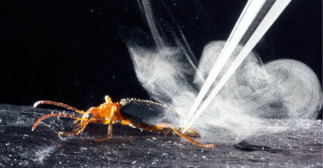 像是在自然界中存在与其相近火力生产能力的生物,庞巴迪甲虫,在这些昆虫的腹部能够储存对苯二酚和过氧化氢,在遇到危机的时候就可以产生将近沸腾的化学物质流。而龙的火焰喷射机制很有可能和莫桑比克射毒眼镜蛇相似,这种眼镜蛇其前牙有一个朝前的孔,其犬齿开口像枪管一样的膛线,可以将毒液射出2-3米远。