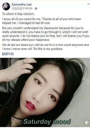 新加坡女歌手李卿瑄22日在脸书PO出影片,片中她化好了妆,涂上了口红,但没有说任何一句话,只是对着镜头拨了拨头发,对着镜头确认自己的状态,看起来没有异状,但下面贴文则留了百字遗言写道:“谢谢那些帮助过我的人,我已经很努力坚持到现在了。”