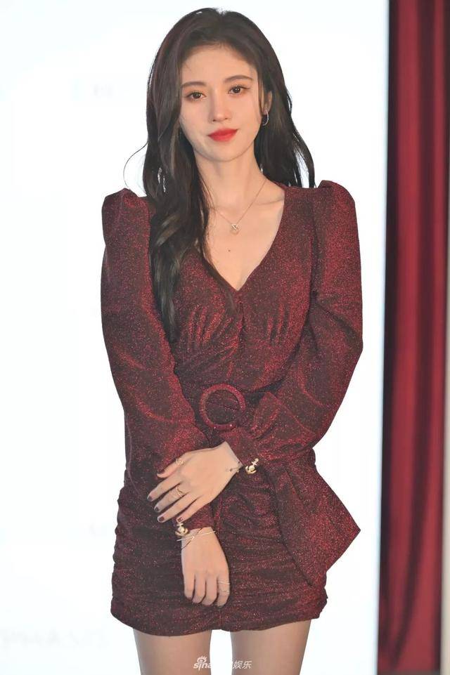 2019年12月22日,鞠婧祎亮相活动,她身穿红色深V短裙优雅不失甜美,不时害羞捂脸尽显呆萌可爱,穿长靴秀纤细美腿。