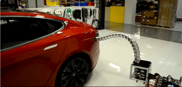 特斯拉近日在@TeslaMotors的官方Twitter账号上放出了一段视频,视频显示该公司开发了一款可以为电动汽车自动充电的蛇形机器人,看上去甚至有点惊悚。