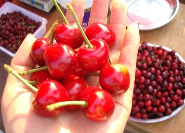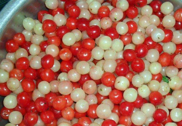 这种水果就是白玉樱桃,顾名思义,也即是一种成熟后不发红、发紫的樱桃,即便熟透了也依然是晶莹剔透的白粉色。