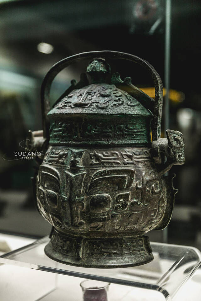 西周饕餮面提梁卣(父辛卣),提梁卣是祭祀中专门盛放秬鬯的礼器。秬鬯即为古代以黑黍和郁金酿造的酒,用于祭祀降神及赏赐有功的诸侯。器物表面的兽面为饕餮,传说是龙生九子之一,它非常贪吃,吃天吃地,最后把自己吃得就剩下一个头。古人用其形象装饰在器物表面,是告诫人们不要贪吃。