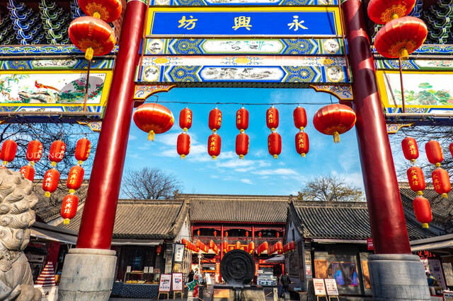 如西安的永兴坊,虽为现代仿造,但其脚下却是唐朝魏征府邸旧址。在此历史基础之上,永兴坊恢复唐朝里坊格局,建有“坊、肆”建筑群,包括有各种风俗文化,令游客一边寻觅陕西及西安最地道风味小吃的同时,也感受古都西安的历史文化。图为游客被一家汉阴白火石汆汤所吸引。