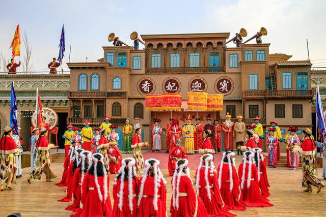 走进香妃园,一场盛大的“香妃迎宾”令人新奇不已,随着一位装扮与《还珠格格》中的香妃完全一样的女子出场时,顿时教人明白了些什么。舞台上欢声歌舞,“乾隆”就在正前方,恍如时空穿梭,令游客置身在200多年前,一位香气弥漫的西域女子将大清皇帝深深迷醉。