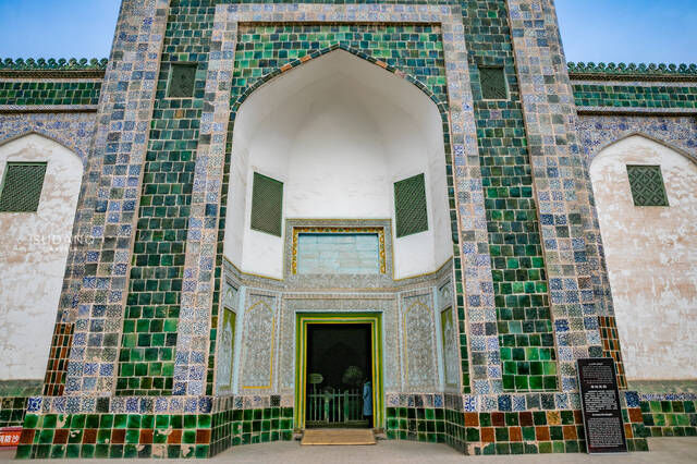 香妃墓,坐落在喀什市东郊5千米的浩罕村,始建于1640年,是一座典型的具有民族特色的建筑古墓。据说墓内葬有同一家族的五代72人(实际只见大小58个墓穴),当地人又称为“阿帕克霍加墓”。墓室内禁止拍摄。