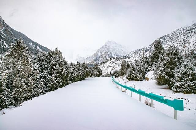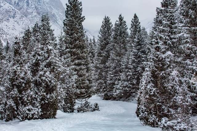 从河谷路上远远的望去,最早映入眼帘的便是雪峰和森林。刚下过一夜雪的冰川公园,银装素裹,恍如是一道没有人类活动的原始风景。而我们一行人的到来,又像是首次发现这样绝美的地方:一个被原始森林包围的冰川地带,充满了冰雪世界的神秘感。