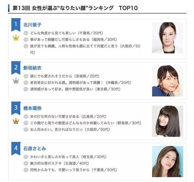 最近,日本oricon第13回“女性最想要的颜”排行榜新鲜出炉了!
