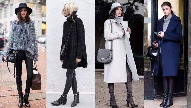 高领毛衣+紧身裤