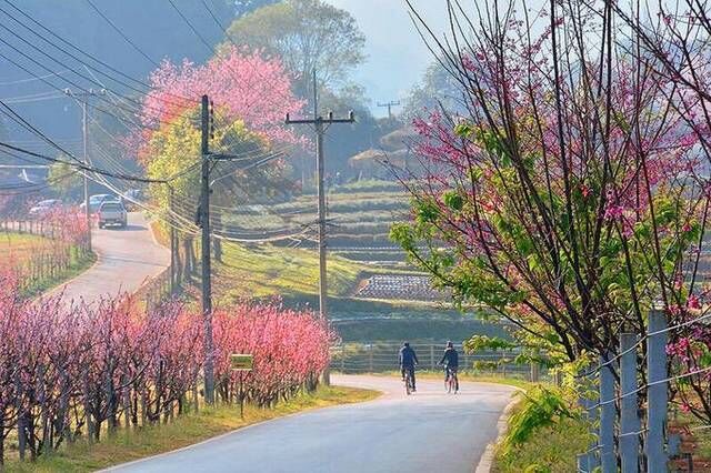 清迈坤昌阡樱花谷的开花时间是每年的12月到次年的2月底,最佳的赏花时间是在1月份,大家记好时间,只有半个月哦,时间过了,景色就没有那么漂亮了。