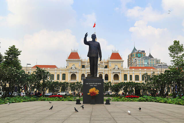 胡志明市政厅位于整个城市的中心,因为是政府办公的地方,所以建筑内部是不对外开放的,不过我们可以参观下它的外围,市政厅前面有一个广场,这里有胡志明的雕像,游客一般都是在这里拍照,这里是免费对外开放的。