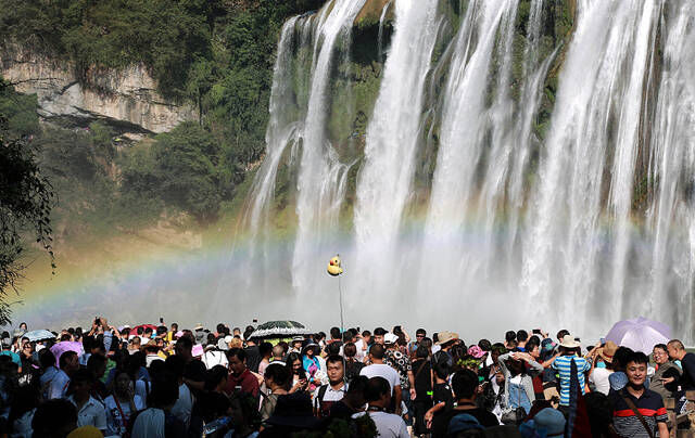 关于黄果树大瀑布,你不用知道它的具体数字,你只需要去周边学校的足球场转一圈,然后想象着把整个图球场立起来,大概也就是黄果树的震撼了。看大瀑布一般2-3个小时足够了,游玩顺序从观光车的停靠入口进入,然后从观景台远观大瀑布,之后穿过水帘洞从里往外看,然后从山脚的犀牛潭仰望大瀑布,最后沿着山路去第三个观景台,俯瞰大瀑布,最后再沿着半边街步行到陡坡塘。丰水期的时候,瀑布水比较大,建议提前准备雨衣,然后就是保护好电子设备,景区水汽比较大。