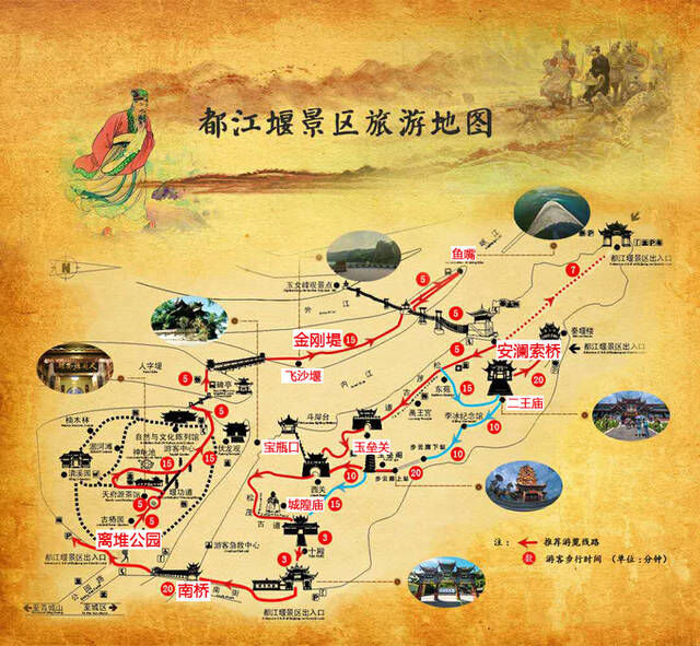 那么不妨我们就放弃成都市区,直接把第一站放在都江堰,都江堰是中国历史上很重要的一个水利工程,小时候在课文中也了解过,今天我们可以亲自去看一眼这个伟大的工程。其实都江堰景区并不只有都江堰水利工程,它包含了离堆公园,安澜索桥,伏龙观,二王庙,玉女峰,还有就是我们要说的都江堰水利工程,它包含了鱼嘴,飞沙堰,宝瓶口三处景点。