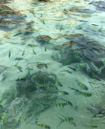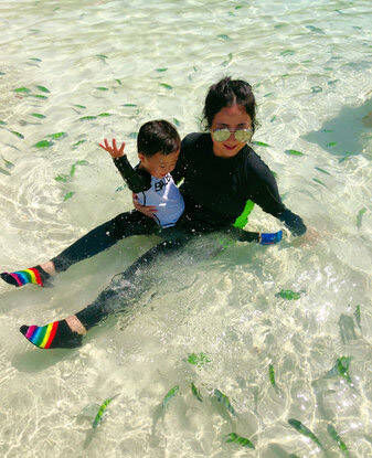 那么为什么说蛋岛比较适合亲子游呢,原因如下,这个海岛不是很大,走路也就30-60分钟就能绕一圈,第二是这个地方距离普吉岛很近,乘坐快艇30分钟就到了,第三这里的海水很浅,基本上只有膝盖那么深,所以小孩基本上不用穿什么救生衣了,第四这个的海水很清澈可以从上面就能看到海水里面的鱼,有4-5种,数量庞大,而且这些鱼都不怕人,你用你的镜头给它们拍照,它们还会给你的镜头来一个亲吻。
