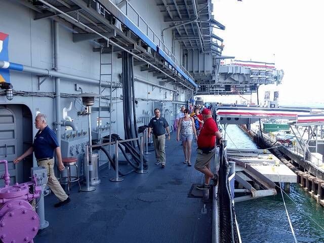 圣地亚哥航母博物馆是建造在一艘航空母舰上面的,它的名字叫做中途号,是20世界服役时间最长的航空母舰,在当时,这艘航母每次可以容纳4500名船员和士兵,每天烧油378500升,每条吃掉的食物高达10吨,不得不说这真的是一个庞然大物啊。