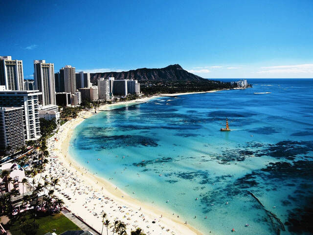 威基基海滩全长1.6公里,位于夏威夷瓦胡岛南部,从东边的卡皮欧尼拉公园到西边的阿拉威游艇码头;因为这里是夏威夷最美的海岛,所以大部分来夏威夷度假都是把第一站放在这里。