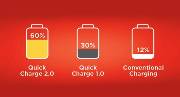 QuickCharge2.0分为了A级和B级两种标准,A级适用于手机、平板和其他电子设备。高通官方数据称QuickCharge2.0A级标准最大充电电流为3A,如果在5V情况下,充电功率为15W,因此充电速度比10W的QuickCharge1.0更快。