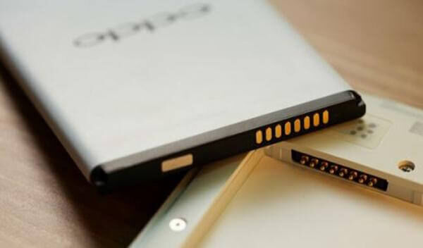 VOOC闪充系统中两样与众不同的硬件设计是7针microUSB接口和8个金属触点电池。一般来讲,常规的microUSB接口为5针,而手机电池则为4至5个触点,但OPPOFind7却为7针、8触点,这多出来的针和触点可以形成一个类似于多块电池的串联通道,从而提升充电速度。