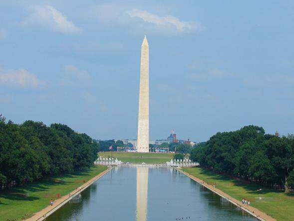 华盛顿纪念碑是为了纪念美国首任总统乔治·华盛顿而修建的,它位于白宫的正南方形,周边是一片绿草茵茵的树木和草坪,在这里你可以拍摄到大片的樱花,特别是在3月和4月的时候;