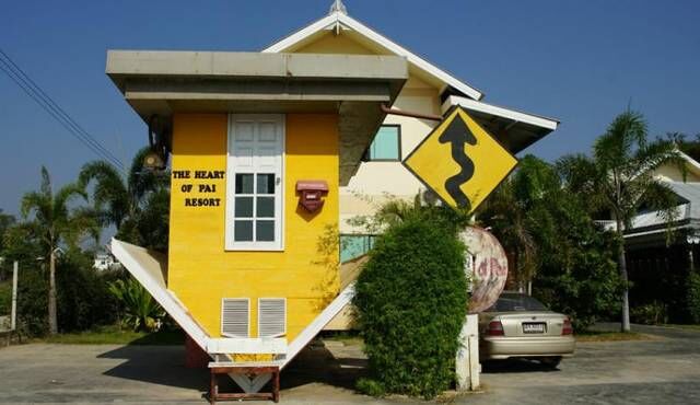 以前记得写过一篇关于倒立的小屋,当时记得是在重庆,不过这个倒立的小屋似乎还挺受欢迎的额,所以在泰国的拜县也出现了这么一个景点;