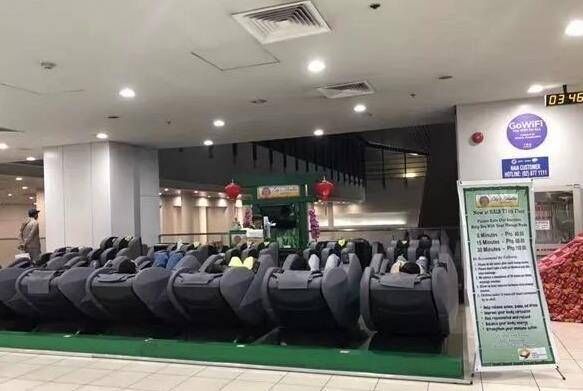 现在很多的机场都有按摩椅,马尼拉机场的4楼就有按摩椅,一般30分钟110比索,不过如果你能受得了机器的折磨,那么可以体验一下,绝对没有人按摩的舒服,不过你可以在这里躺几个小时还是没有问题的;