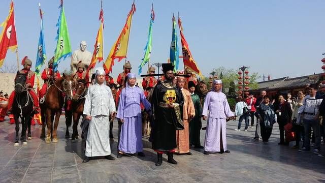 这个景区是以宋文化为主题,每天中午的酒店,在迎宾门都能看到包公率领一众兵士护卫从迎宾门隆重走出,一边走还会一边抱拳向游客行礼;