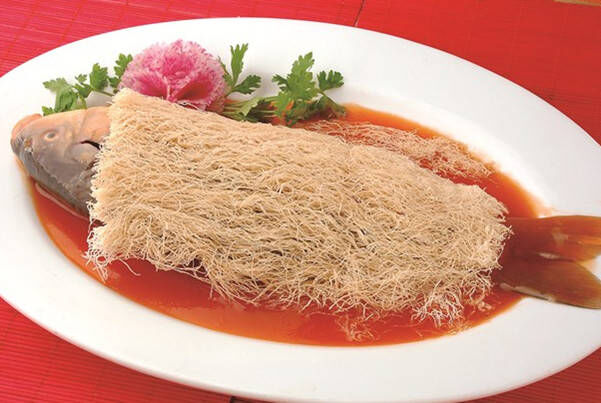 鲤鱼焙面也被称为糖醋软溜鱼焙面,在开封的大小酒馆都能吃到,它的特点是色泽枣红,软嫩鲜香,其主要的做法就是将糖醋熘鱼加上焙面;