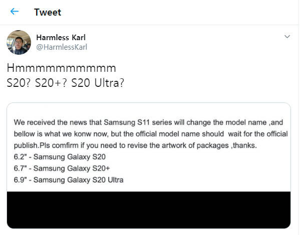 据报道,三星电子将使用“ S20”代替“ S11”作为下一个战略智能手机“ Galaxy S”系列的名称,并且有消息称,还将发布6.9英寸超版本。