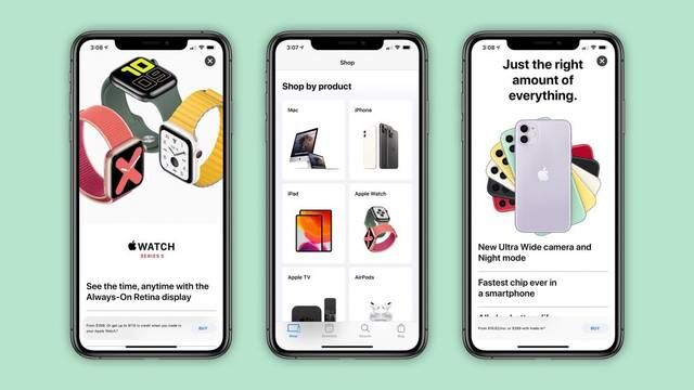 最新的更新将Discover和Shop选项卡合并到一个统一的界面中,其中包含一系列卡片和区域,突出显示新产品、已经拥有的设备和购物类别。它的设计类似于App Store的故事,全屏幕视觉效果和显示底部的购买按钮。单独的产品页面现在提供了一种更接近Apple.com的浏览体验。