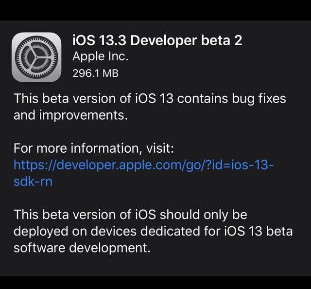 苹果今天发布了第二版的开发测试版 iOS 13.3 ,以及 tvOS 13.3 beta2 与 WatchOS 6.1.1 。